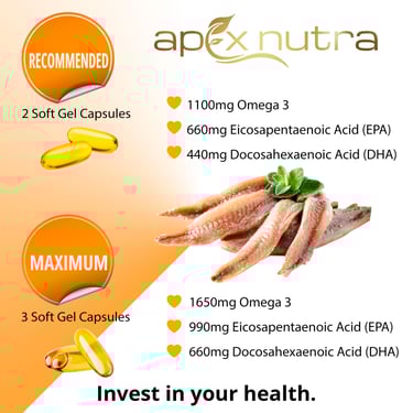 🩸 HIGH LEVEL OF EPA AND DHA - Each serving of our Omega 3 Fish Oil offers 550mg of Omega 3, 330mg of EPA (Eicosapentaenoic Acid), and 220mg of DHA (Docosahexaenoic Acid) for normal heart function. DHA offers support for healthy brain function & vision.